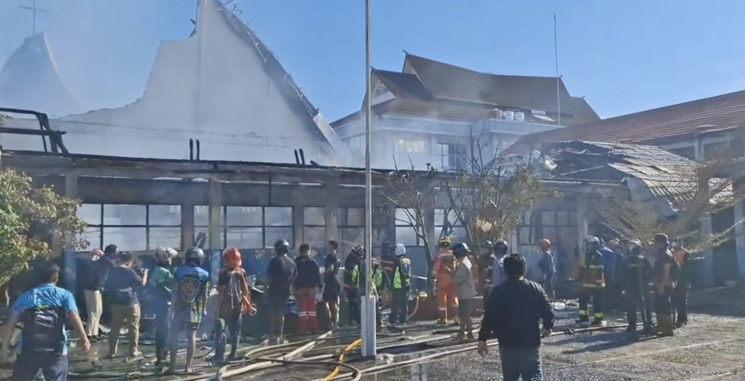 Dalam hitungan menit, api dengan cepat membesar dan melalap habis seluruh bagian atap. Bahkan kobaran api merembet dan ikut menghanguskan salah satu bangunan milik sekolah SMP Kristren yang posisinya saling berdempetan.