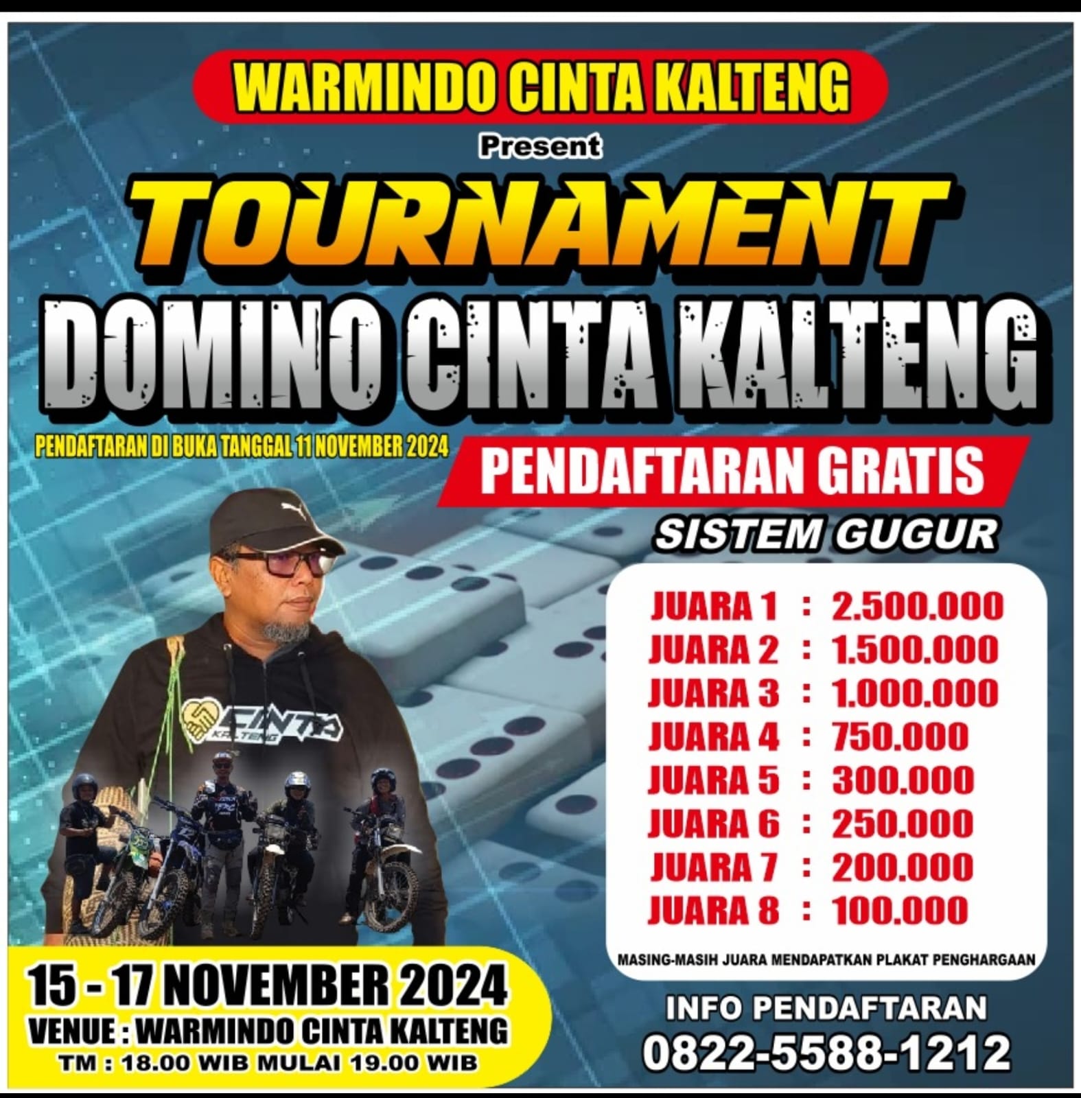 Latar belakang ini pula yang menjadi alasan komunitas pecinta motor trail Cinta Kalteng menggelar turnamen domino yang pendaftaranya dibuka gratis. Turnamen dengan total hadiah jutaan rupiah tersebut akan digelar di Kafe Warmindo Cinta Kalteng, Jalan Yos Sudarso, Kota Palangka Raya pada 15-16 November 2024.
