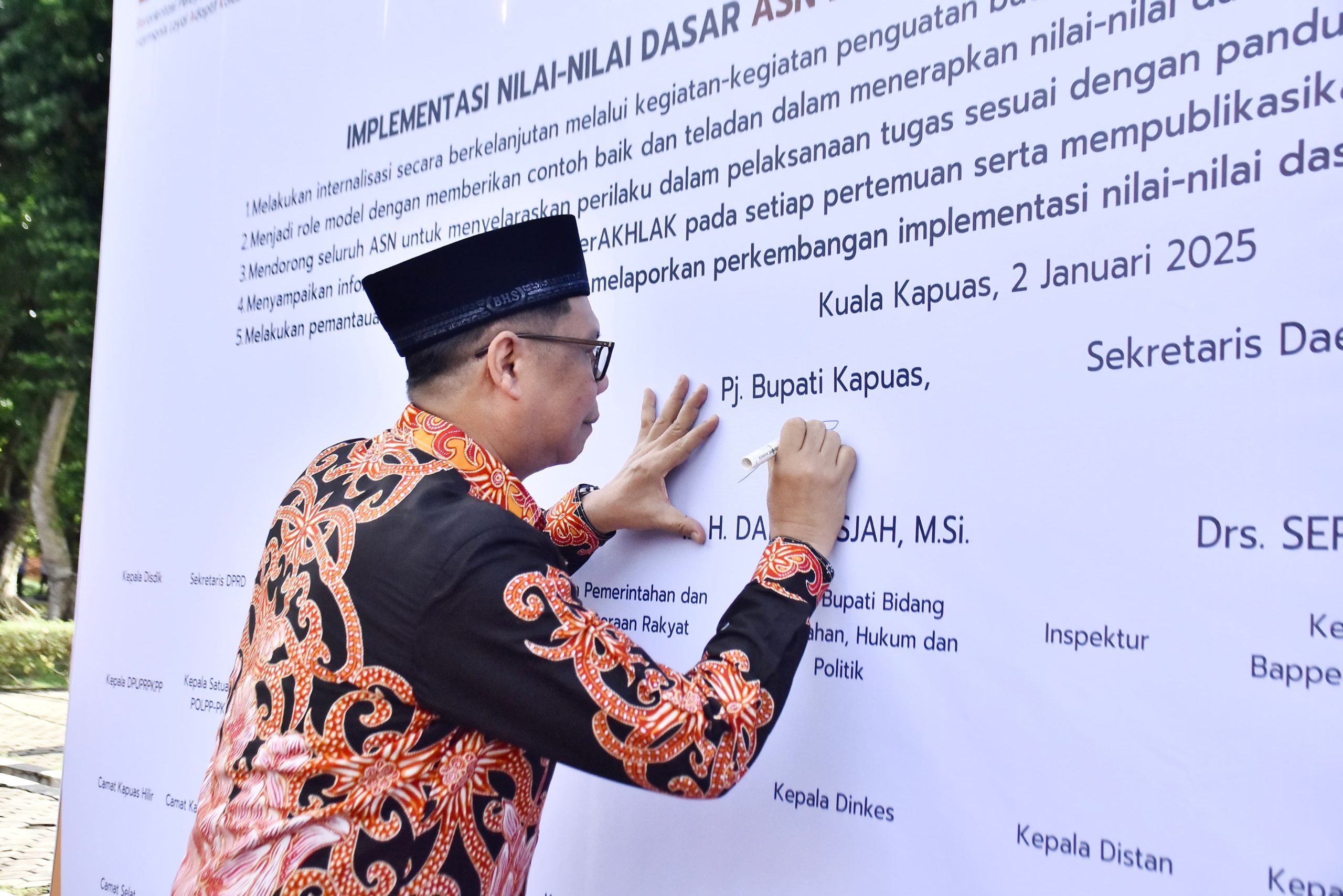 KUALA KAPUAS – Pj Bupati Kapuas Darliansjah mengingatkan seluruh Aparatur Sipil Negara (ASN) untuk bisa terus meningkatkan meningkatkan komitmen implementasi budaya kerja. Pasalnya, internalisasi nilai-nilai dasar ASN BerAKHLAK telah dijalankan dari seluruh kepala perangkat daerah sejak Januari 2024.