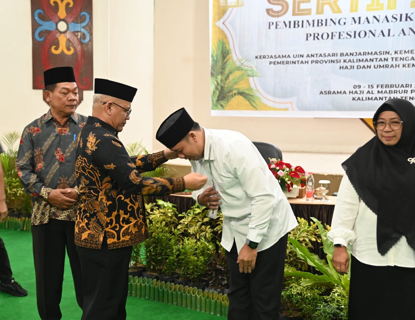 PALANGKA RAYA – Plh Staf Ahli (Sahli) Gubernur Bidang Pemerintahan, Hukum, dan Politik (Pemkumpol) Suharno hadiri pembukaan sertifikasi pembimbing manasik haji dan umrah profesional angkatan VI di Aula Arafah Asrama Haji Al-Mabrur, Minggu (9/2/2025).