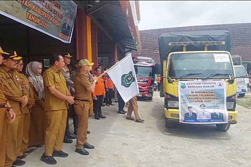 KUALA KAPUAS – Pemerintah Kabupaten (Pemkab) Kapuas melalui Dinas Sosial (Dinsos) dan Badan Penanggulangan Bencana Daerah (BPBD) Kapuas menyalurkan bantuan logistik untuk masyarakat yang terdampak banjir di sejumlah wilayah. Bantuan ini dilepas secara simbolis oleh Sekretaris Daerah (Sekda) Kapuas, Septedy, di halaman kantor BPBD Kapuas.