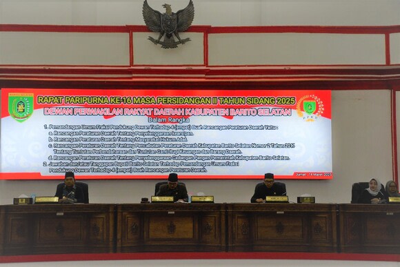 BUNTOK – Wakil Bupati Barsel Khristianto Yudha menghadiri rapat paripurna dengan agenda membacakan tanggapan bupati terhadap pandanan umum fraksi pendukung DPRD mengenai empat rancangan peraturan daerah (raperda), Selatan (14/3/2025).
