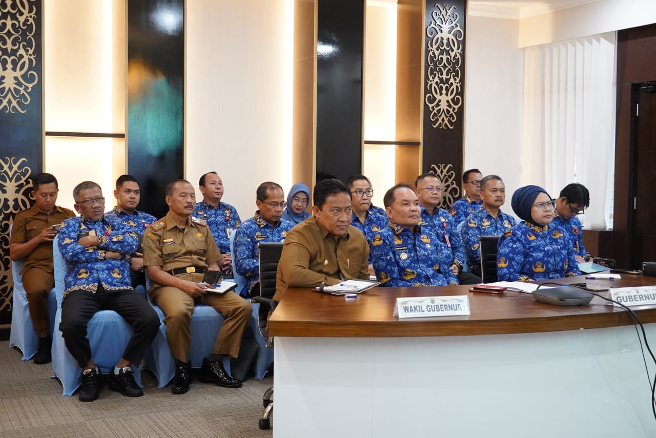 PALANGKA RAYA – Wakil Gubernur Kalteng Edy Pratowo mengikuti rapat koordinasi (rakor) penyelenggaraan pemerintah daerah secara virtual bersama Menteri Dalam Negeri (Menagri) Tito Karnavian, Senin (17/3/2025).