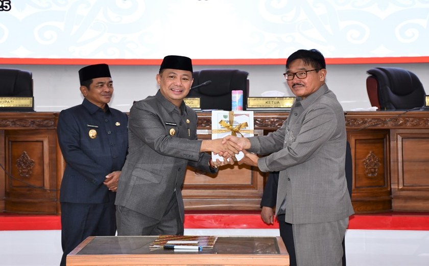 BUNTOK – DPRD Barsel menggelar rapat paripurna dengan agenda mendengarkan Laporan Keterangan Pertanggungjawaban (LKPJ) tahun Anggaran 2024, Jumat (21/3/2025). Rapat paripurna yang dipimpin Ketua DPRD HM Farid Yusran itu dihadiri langsung oleh Bupati Eddy Raya Samsuri dan Wakil Bupati Khristianto Yudha.
