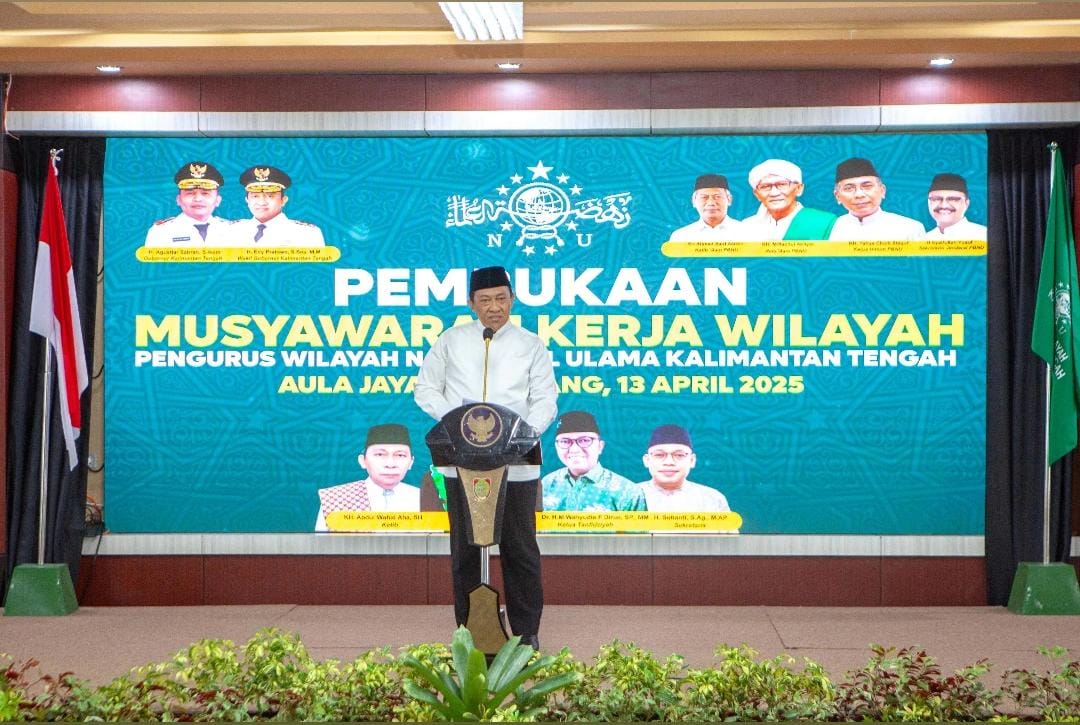PALANGKA RAYA – Wakil Gubernur Kalteng Edy Pratowo mendapat penghomartan untuk membuka Musyawarah Kerja Wilayah (Muskerwil) Pengurus Wilayah Nahdlatul Ulama (PWNU) Kalteng, Minggu (13/4/2025). Kehadiran Edy menandakan pentingnya kehadiran NU bagi pemerintah.