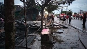“Berdasarkan keterangan warga, api membesar dari bagian belakang kios. Sejauh ini diduga disebabkan korsleting listrik,” kata Kasi Operasi Penyelamatan Damkar Palangka Raya Sucipto. (ran)