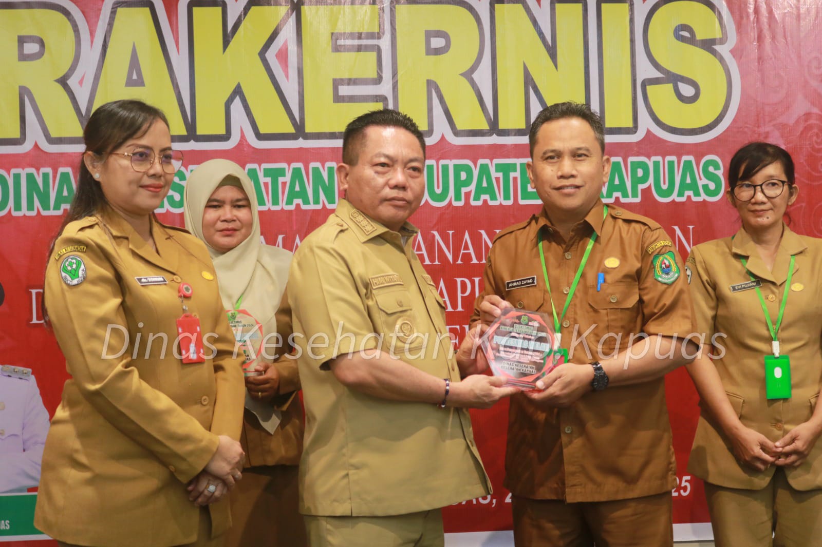 KUALA KAPUAS – Pemerintah Kabupaten Kapuas melalui Dinas Kesehatan memberikan penghargaan kepada tiga Puskesmas terbaik atas pencapaian kinerja tahun 2024. Penghargaan tersebut diserahkan langsung oleh Bupati Kapuas, H. M. Wiyatno, S.P, didampingi Kepala Dinas Kesehatan, dr. Tonun Irawaty Panjaitan, M.M, dalam kegiatan Rapat Kerja Teknis (Rakernis) Bidang Kesehatan Tahun 2025, yang berlangsung di Aula Hotel Fovere Kuala Kapuas, Senin (28/4/2025).