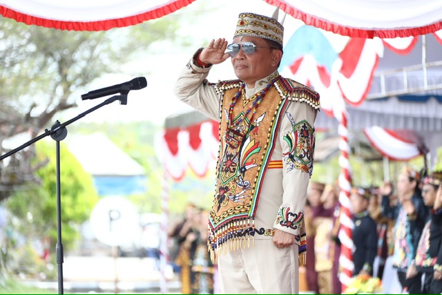 KUALA KURUN – Gubernur Kalteng Agustiar Sabran memimpin langsung upacara peringatan Hari Jadi ke-23 Kabupaten Gunung Mas, Sabtu (21/06/2025). Upacara yang digelar di halaman kantor bupati Gunung Mas itu mengusung tema pembangunan infrastruktur berkelanjutan.